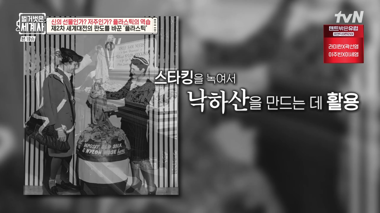 1941년 미국이 제2차 세계대전에 참전하면서 생산된 나일론은 모두 군수용으로 전용된다. 나일론은 낙하산, 타이어 코오드, 비행기 연료탱크 등의 제조에만 허용되어 미국의 전쟁수행을 도왔다.